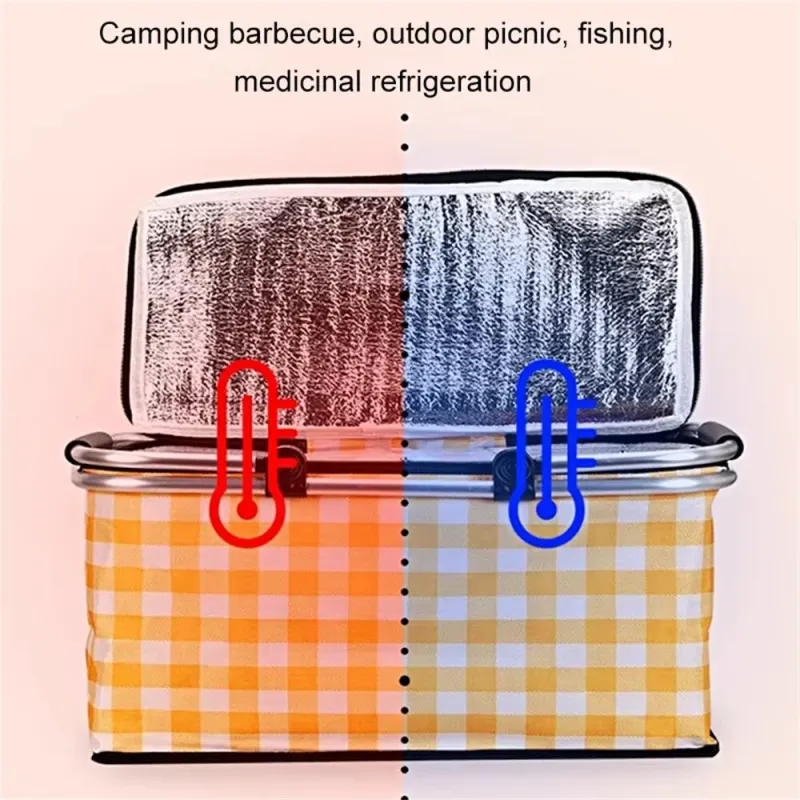 IPRee Folding Basket Picnic Basket Outdoor Handheld Basket Insulation Box Household Supermarket Shopping Storage Basket