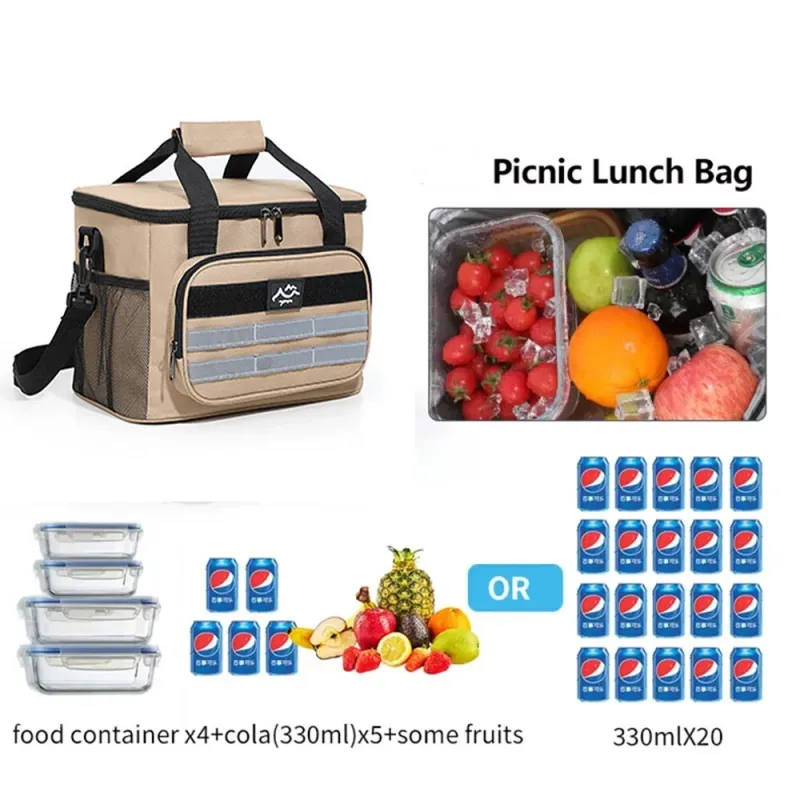 IPRee Large-Capacity Outdoor Picnic Bag Handheld&Crossbody Multi-Layers Travel Thermal Bag Two-way Zipper Portable Outdoor Insulation Bag
