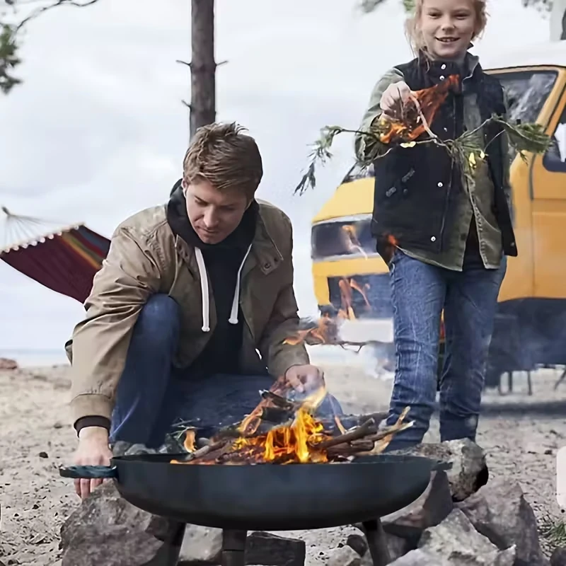 IPRee Outdoor Courtyard Round Brazier Portable Wood Stove 4-5 People Household Charcoal Heating Stove Portable Firepit Outdoor Yard Garden Picnic Campfire Grill Rack
