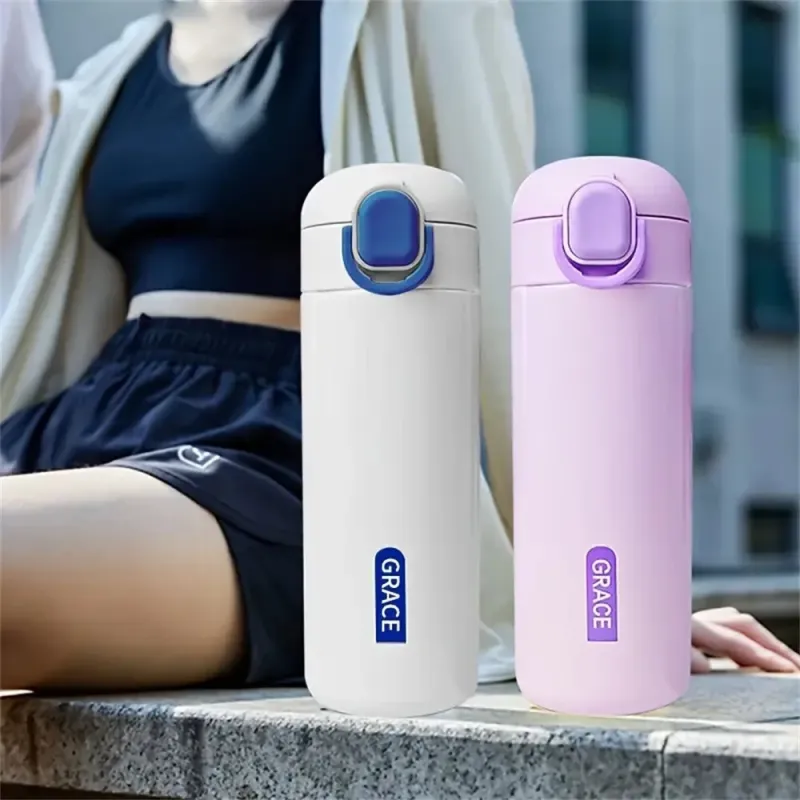 IPRee Vacuum Thermal Kettle Portable Stainless Steel Vacuum Flask with Straw Cute Thermos Bottle Elegant Fashion Coffee Mug School
