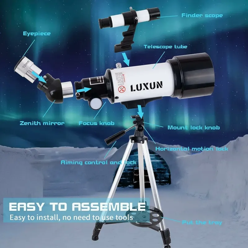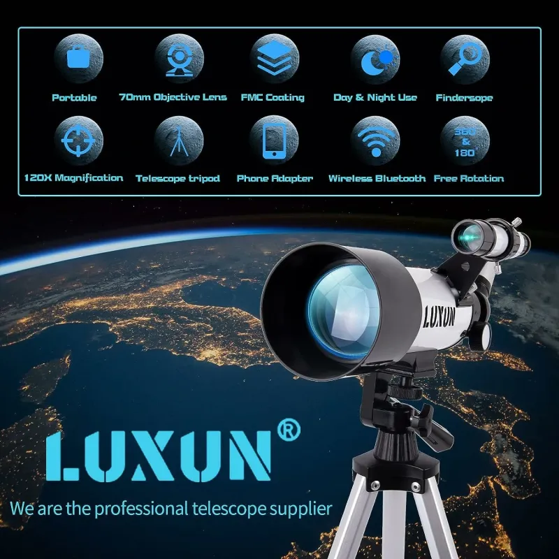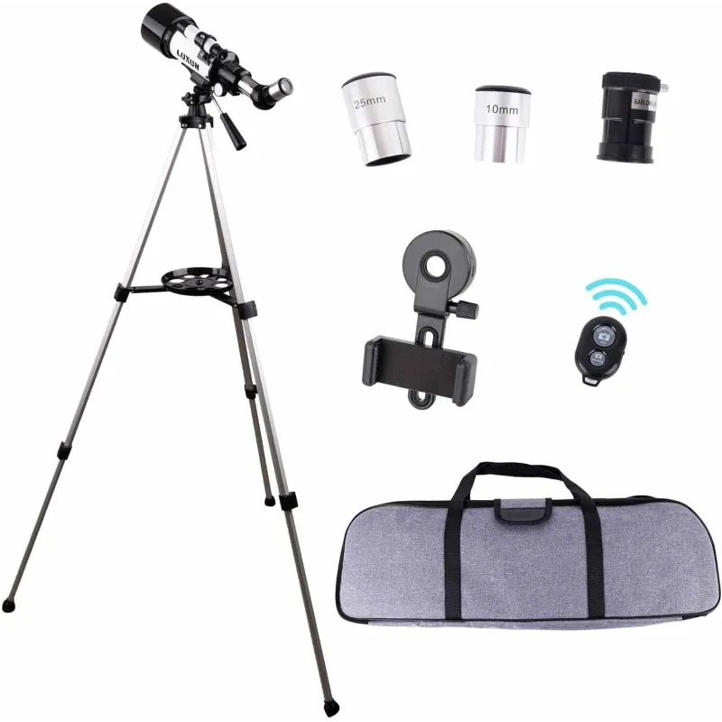 LUXUN Telescope for Astronomy Beginners Kids Adults, 70mm Aperture 400mm Astronomical Refracting Portable Telescope - Travel Telescope with Phone Adapter Wireless bluetooth