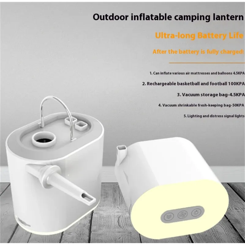 Mini Air Pump for Inflatables Ball Beds 2 in 1 Rechargeable with Camping Light, Compact inflator pump for Floats, Balloons & Vacuum for Storage Bags