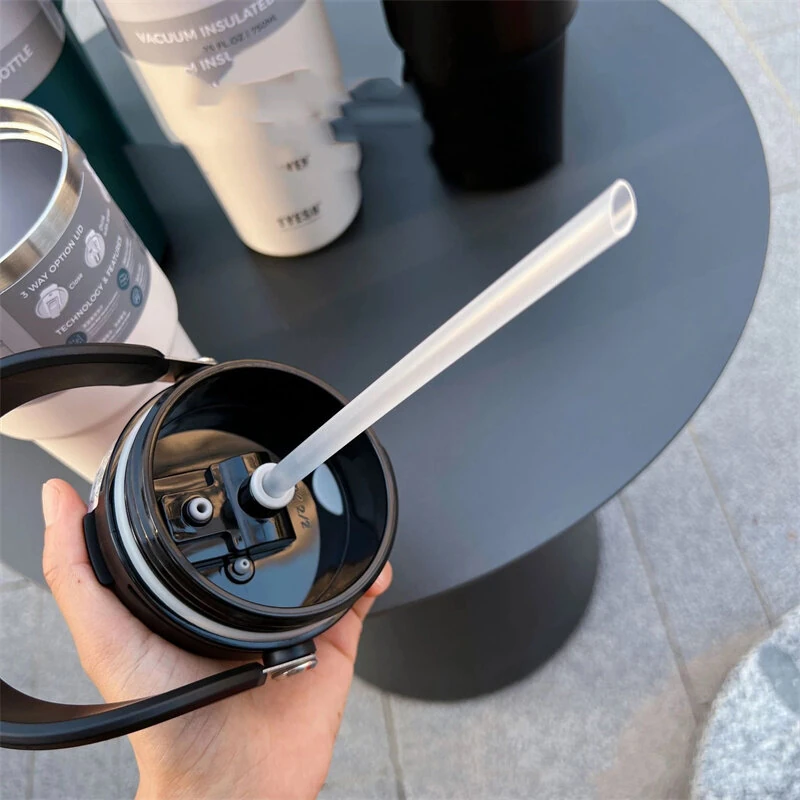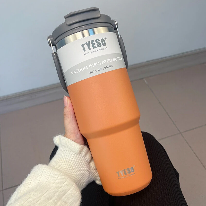 Tyeso 900ml/1200ml Portable Double Layer 304 Stainless Steel Water Bottle, Cold and Hot Coffee, Travel Gym Mug with Lid and Straw, Car Thermos Cup