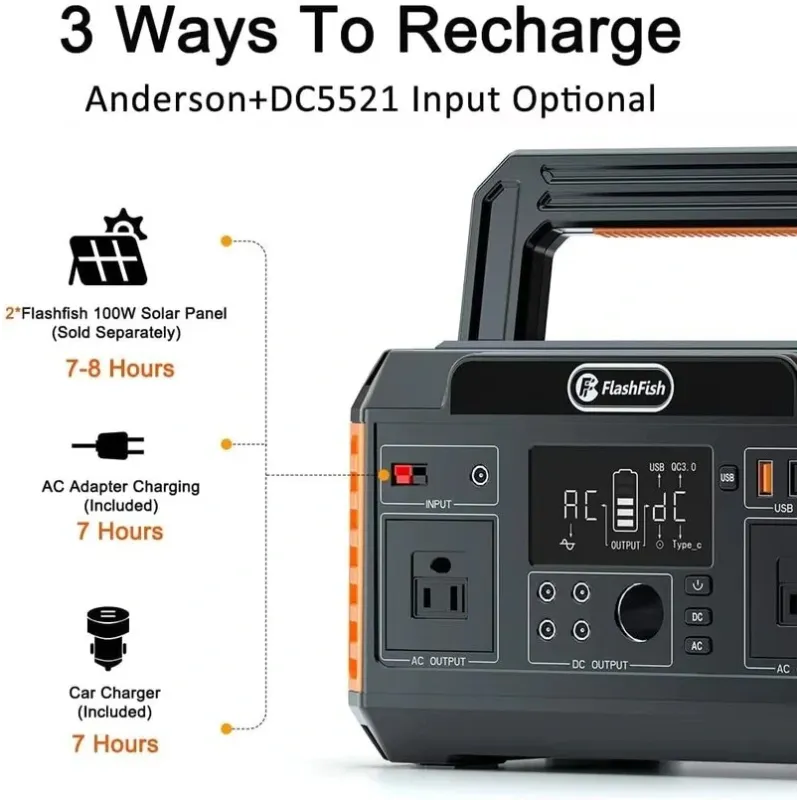 UDirect FlashFish P60 560W Portable Power Station 520Wh 140400mAh Solar Generator 110V Pure Sine Wave Power Generator For Camping Travel