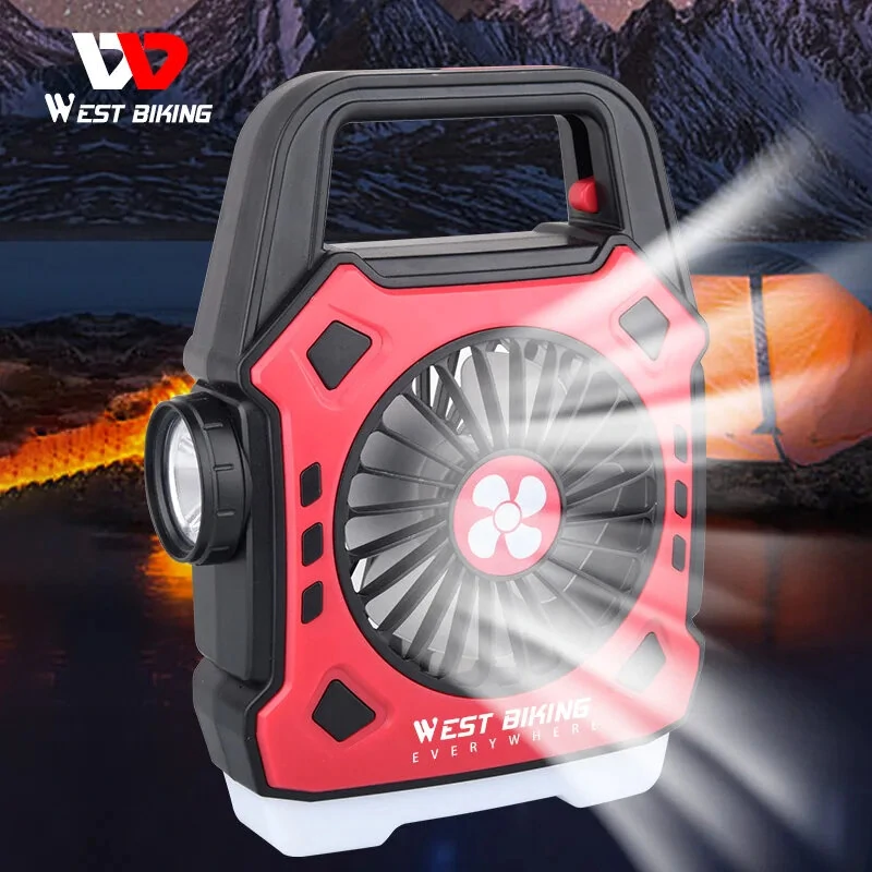 WESBIKING Portable Camping Light with Fan 3 In 1 Multifunctional Outdoor Flashlight USB Charging Home Lamp Hanging Tent Light