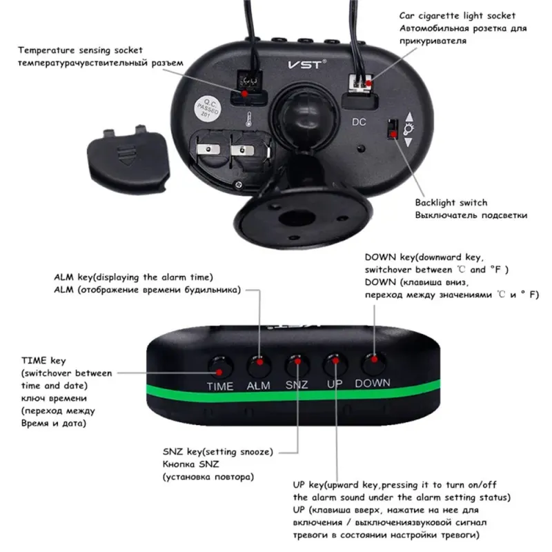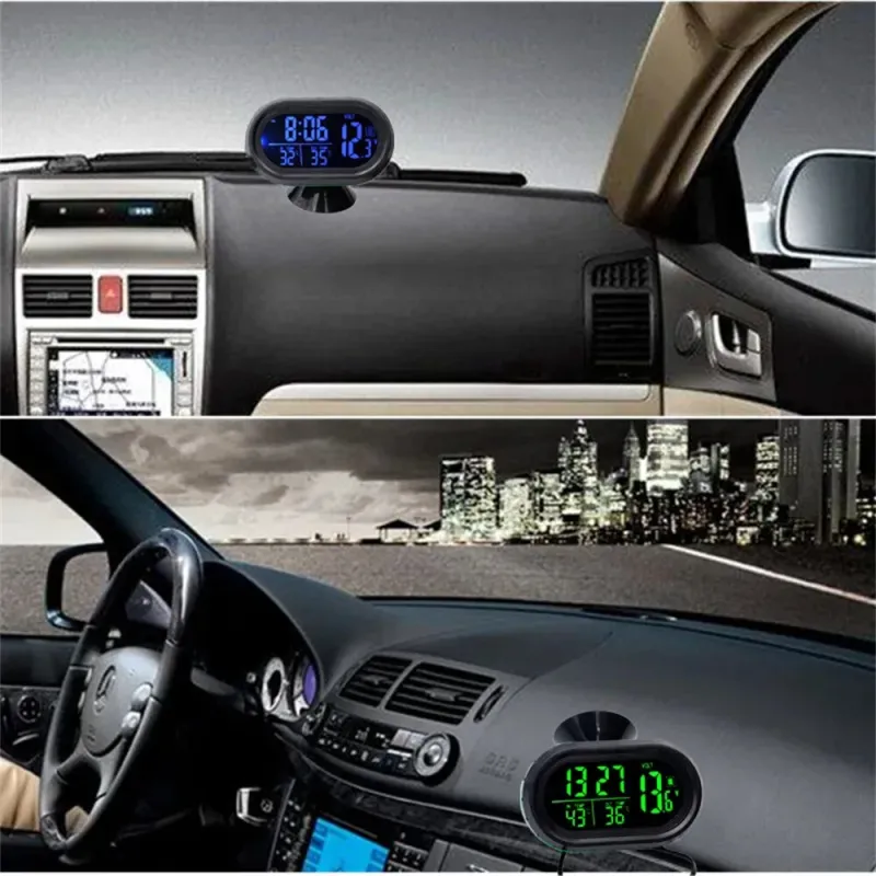 Digital Car Thermometer Temperature Monitor Car Ornament Luminous Clock Voltmeter DC 12V-24V Time Date Dual Display Freeze Alert