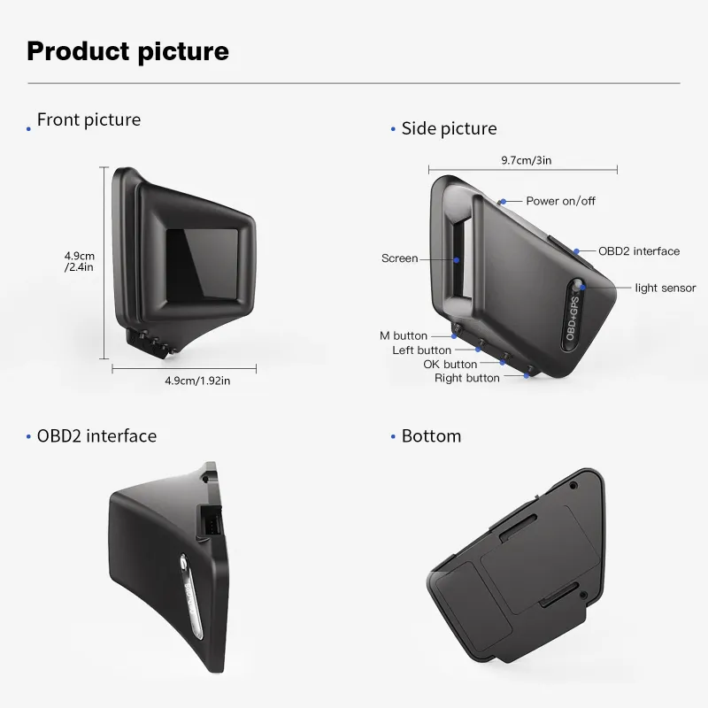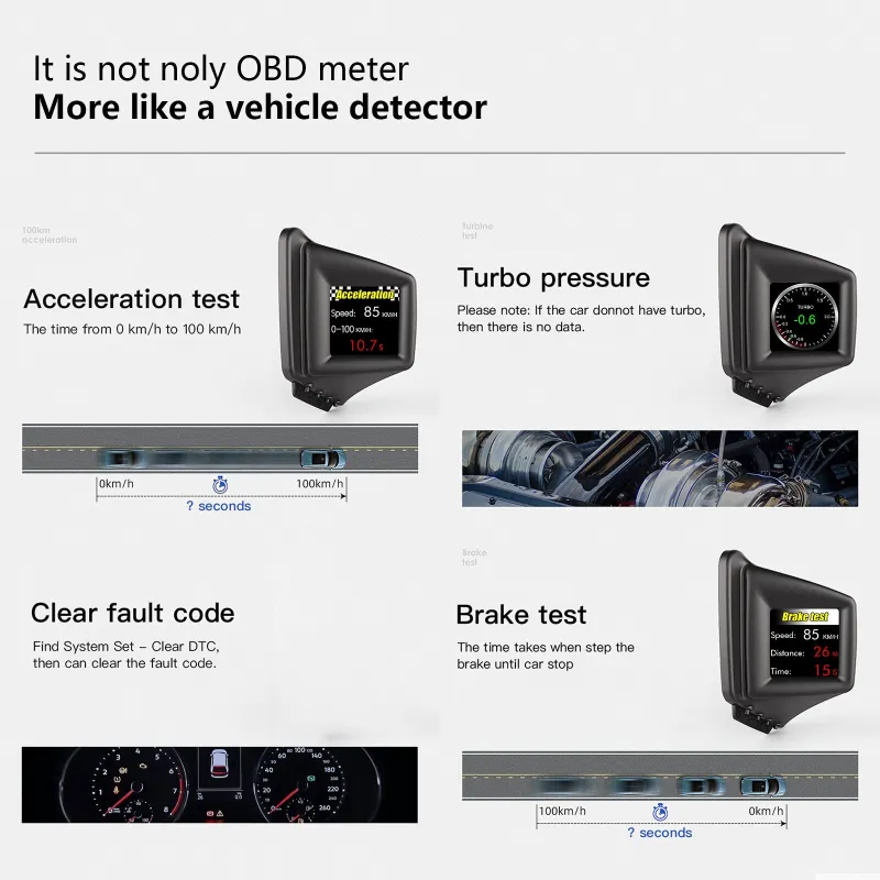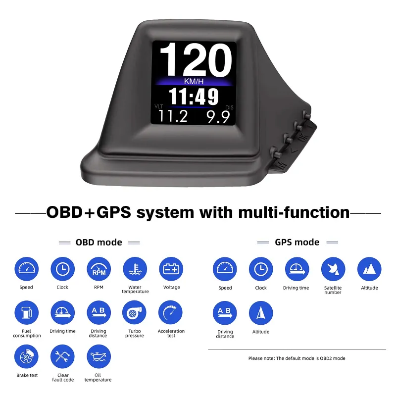 Head-Up Display OBD2+GPS On-board Computer HUD Car tachometer Turbo Oil Pressure Water Temp GPS Speedometer For Gasoline Car