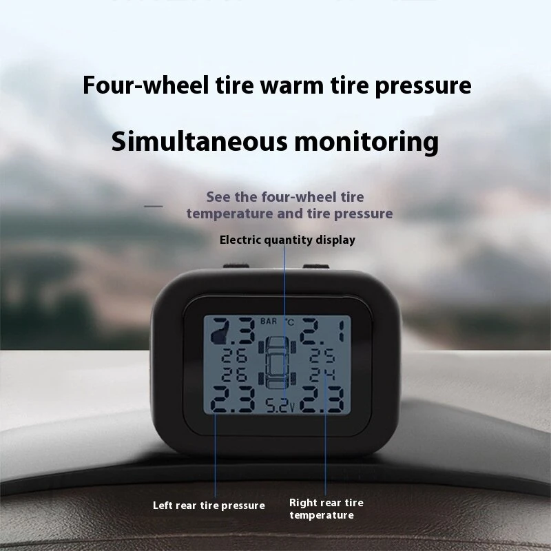 Mini Car TPMS Tire Pressure Monitoring System with External Tire Pressure Sensor Temperature Monitor LCD Display