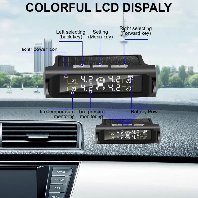 Wireless Car TPMS Tire Pressure Monitoring System External Sensor Solar Power Auto Security Alarm Systems Tire Pressure Digital LCD Display