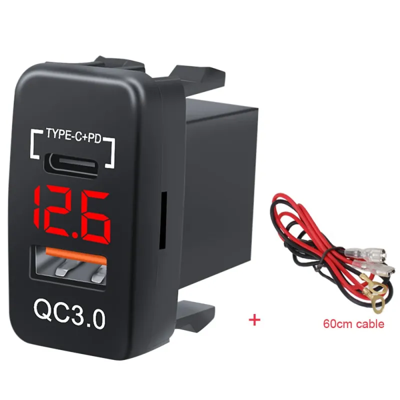 12-24V Dual USB Car Charger Socket Type-C PD QC3.0 LED Voltmeter Waterproof Fast Charge Adapter for Bus Trailer Boats Marine