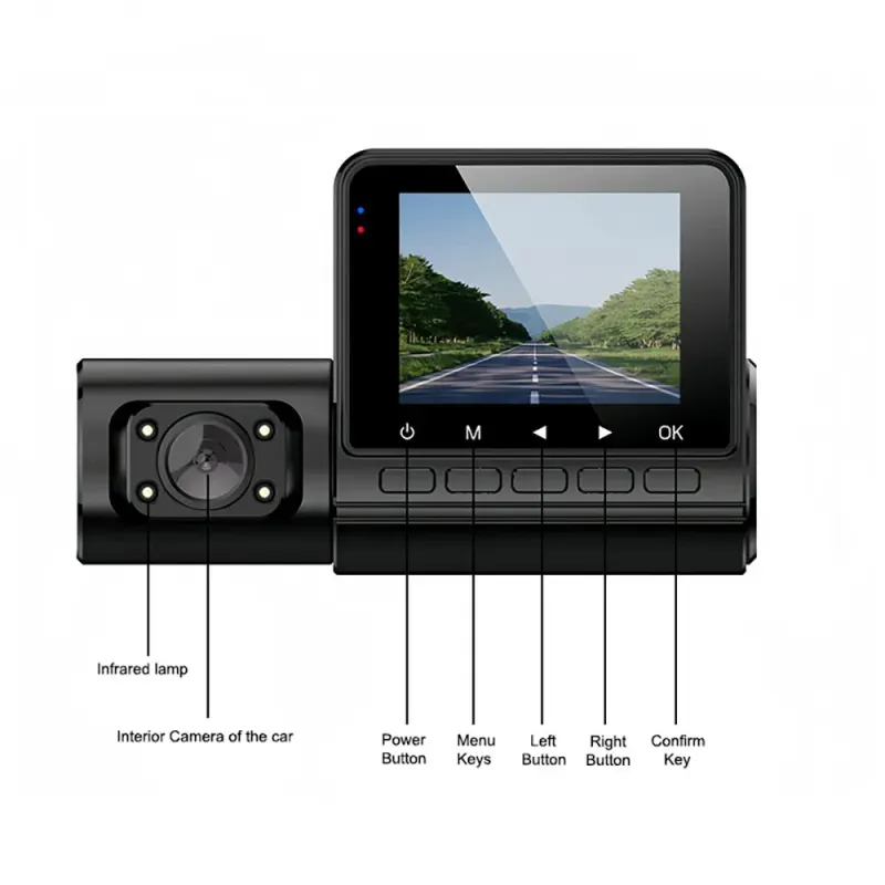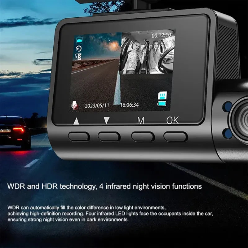 3 Lens Car Dash Cam Front Inside Rear Lens Car Driving Recorder HD 1080P Rear Camera Night Vision Dual-Angle Car DVR Driving Video Recorder