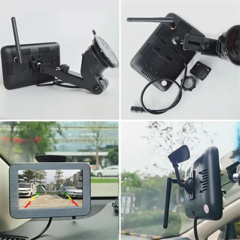 Wireless Solar Powered Backup Camera AHD 5 Inch Rear View Monitor Wide Angle Night Vision Long Range Transmission Waterproof