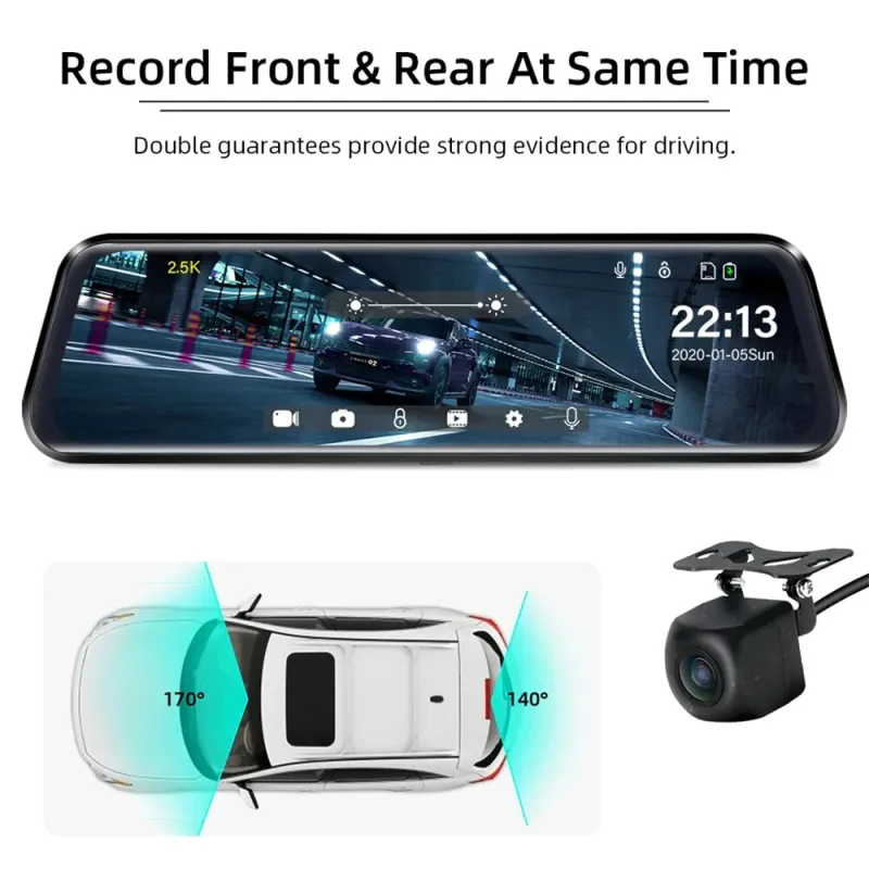 10Inch Touch Screen 1080P HD Front Rear Dual Camera Full-Screen Streaming Car Rearview Mirror Dashcam Dual Channel Recorder