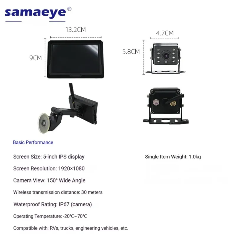 Wireless RV Reversing Camera System 4.3Inch HD / 5Inch AHD Screen Reversing Camera Display Monitor for RV Cars Truck Van