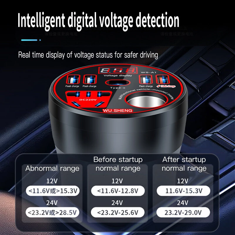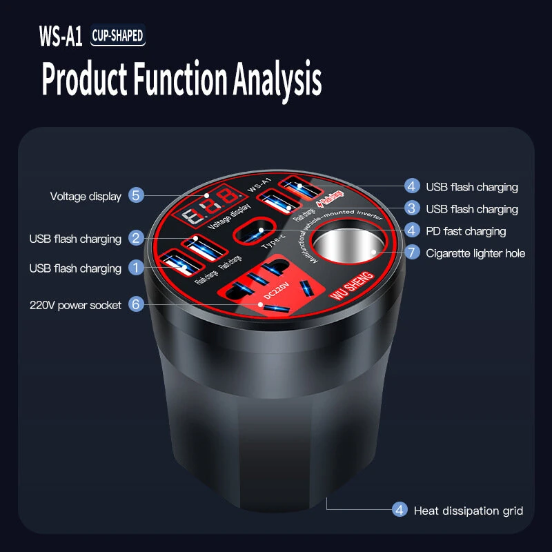 12V 24V to 220V Power Inverter with Multi-function Car Socket Charger Fast Charging for Mobile Phones Car Inverter Charger Power Converter QC3.0 USB Fast Charging
