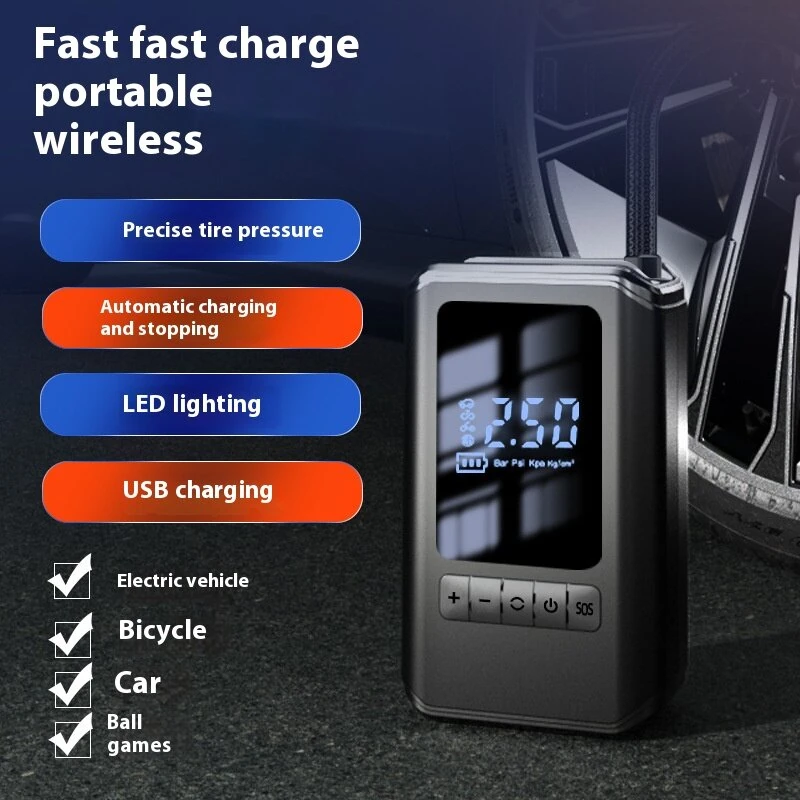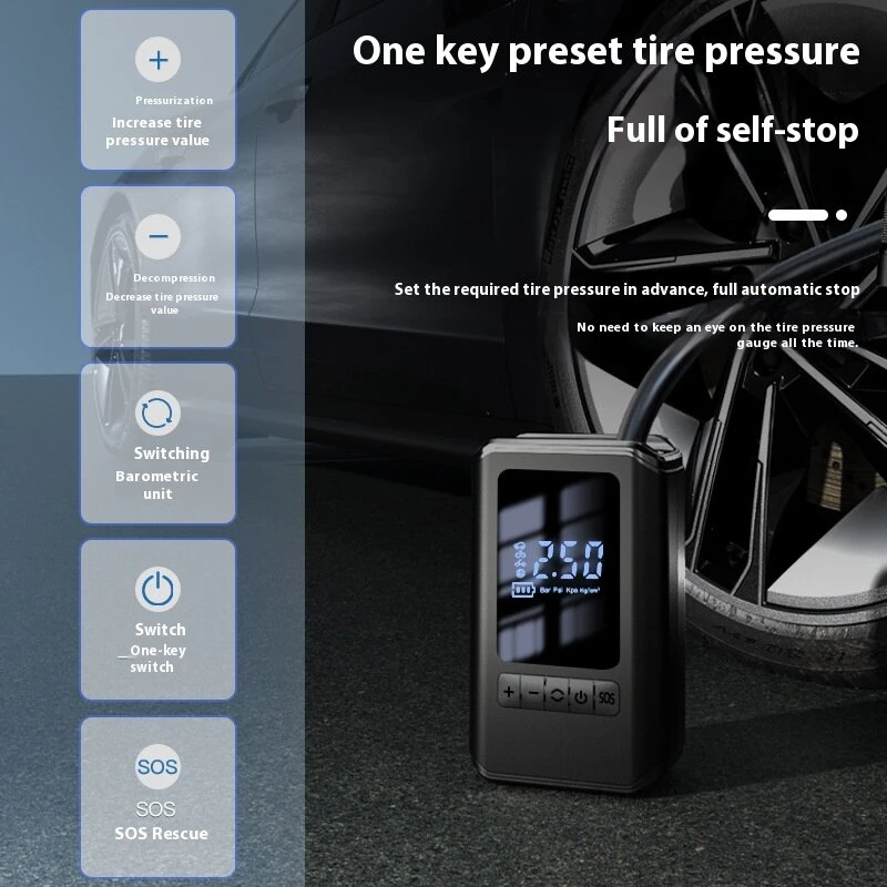 150PSI Portable Air Compressor for Car Tires with Automatic Shut off Digital Pressure Gauge Emergency LED Light Cordless Automotive Pump