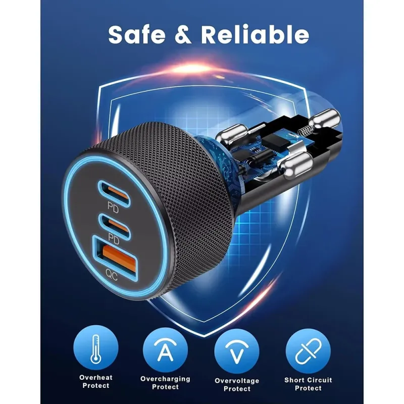 3-Port USB C Car Charger Adapter 67W Car Charger Dual USB-C & USB-A Car Power Adapter PD/QC Fast Charging for iOS and Android Devices