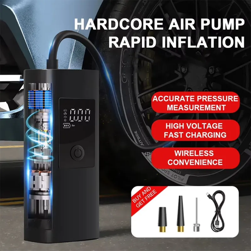 80W Cordless Car Tyre Inflator Air Compressor LCD Digital Display USB Rechargeable 3000mAh Battery for Car Motorcycle Bicycle Ball