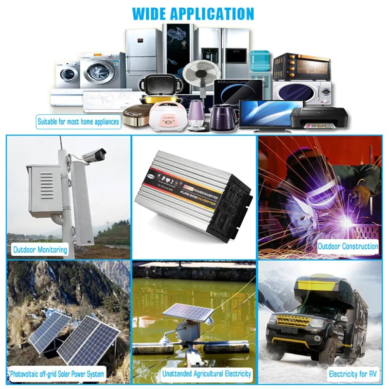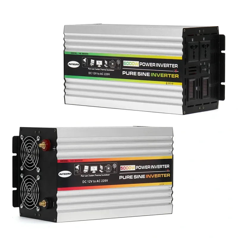 AUTSOME 12V to 220V Converter Pure Sine Wave Power Inverter Dual LCD Digital Display 2 Sockets Multiple Protection Functions