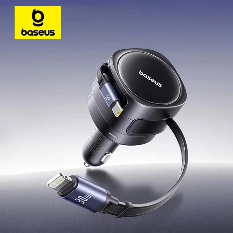 Baseus Car Charger Dual Retractable Cable PD QC SCP AFC PPS Fast Charging 180 Rotating For Tablet for iPhone for Samsung Huawei Xiaomi