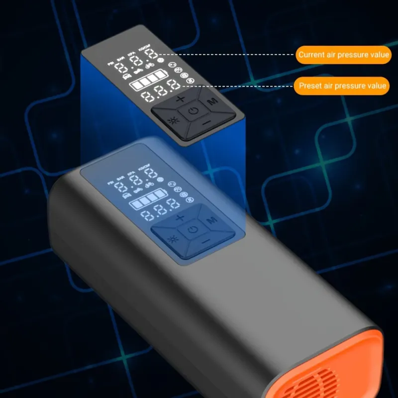 Cordless Smart Car Tire Inflator Dual Screen Display with LED Light Accurate Pressure Measurement Portable Multi-function Car Air Pump