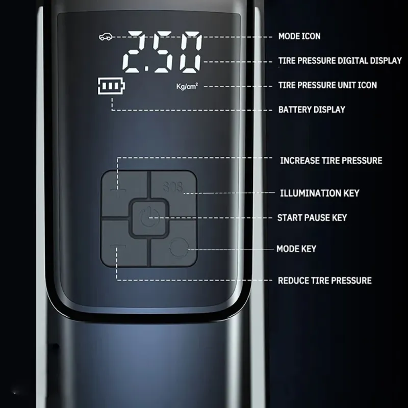 Cordless150psi Vehicle Air Pump with LED Lighting Digital Display Accurate Detection Of Preset Tire Pressure Low Noise Tire Inflation