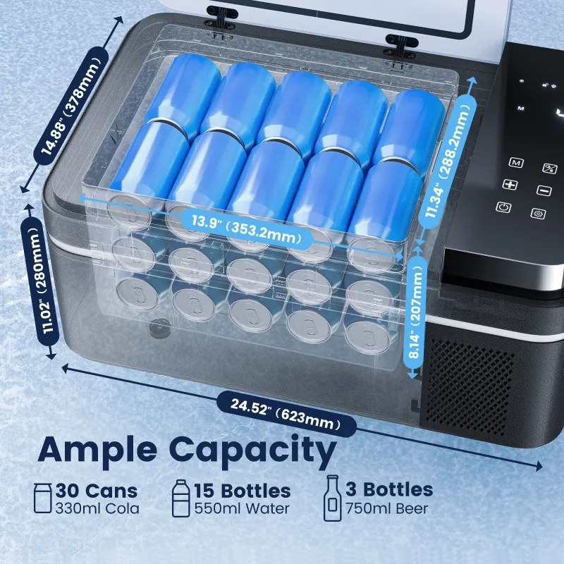 HCALORY 12 Volt Car Refrigerator 22Quart 12V Car Fridge Portable Freezer with Compressor 21L Mini Electric Cooler (-4~68) with 12/24V DC & 110V AC for Camping, RV, Travel, Truck, Boat and Home Use