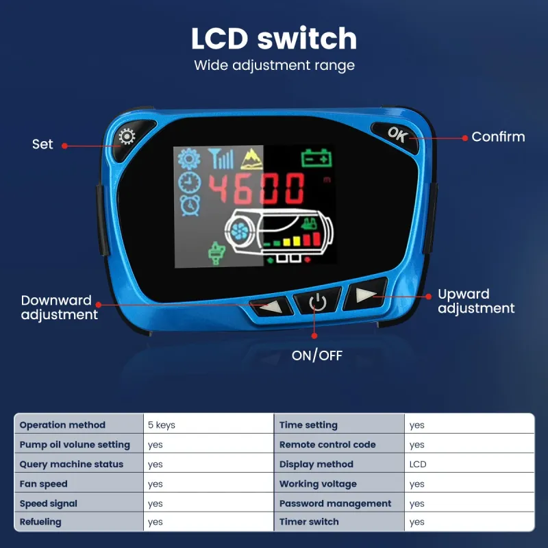 Hcalory 12V 24V LCD Monitor Switch with Remote Control For Diesel Heater Universal