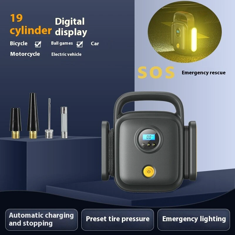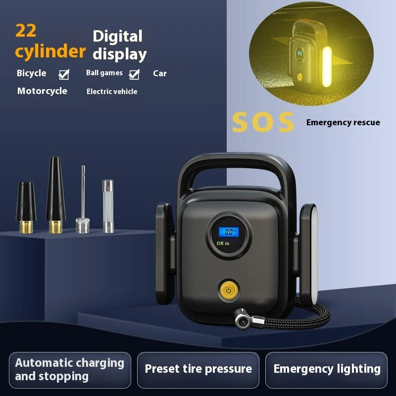 Portable Car Tire Inflator Pump 150PSI Digital Tyre Inflator Air Compressor Auto Stop Preset Pressure LCD Display Air Inflator Pump with SOS LED Light Tyre Pressure Gauge
