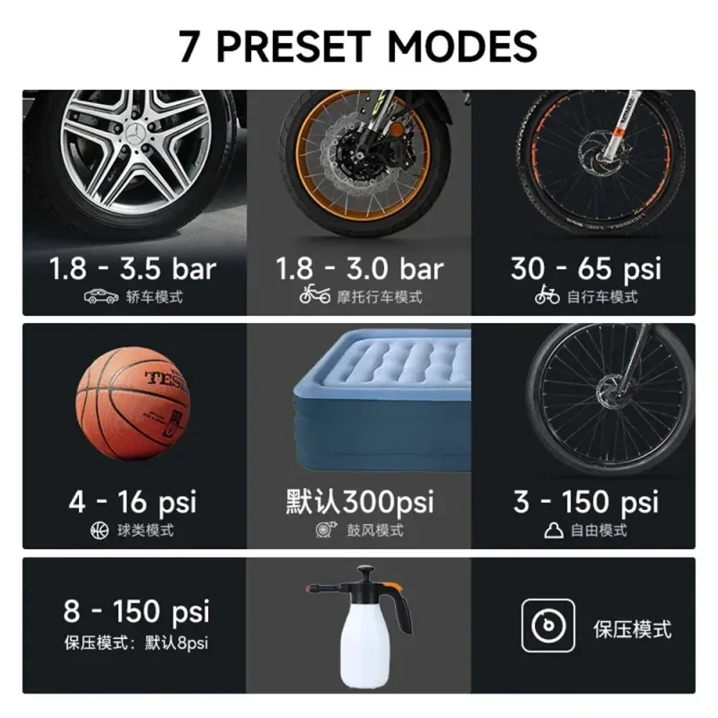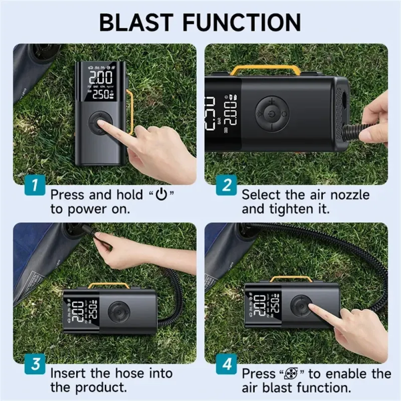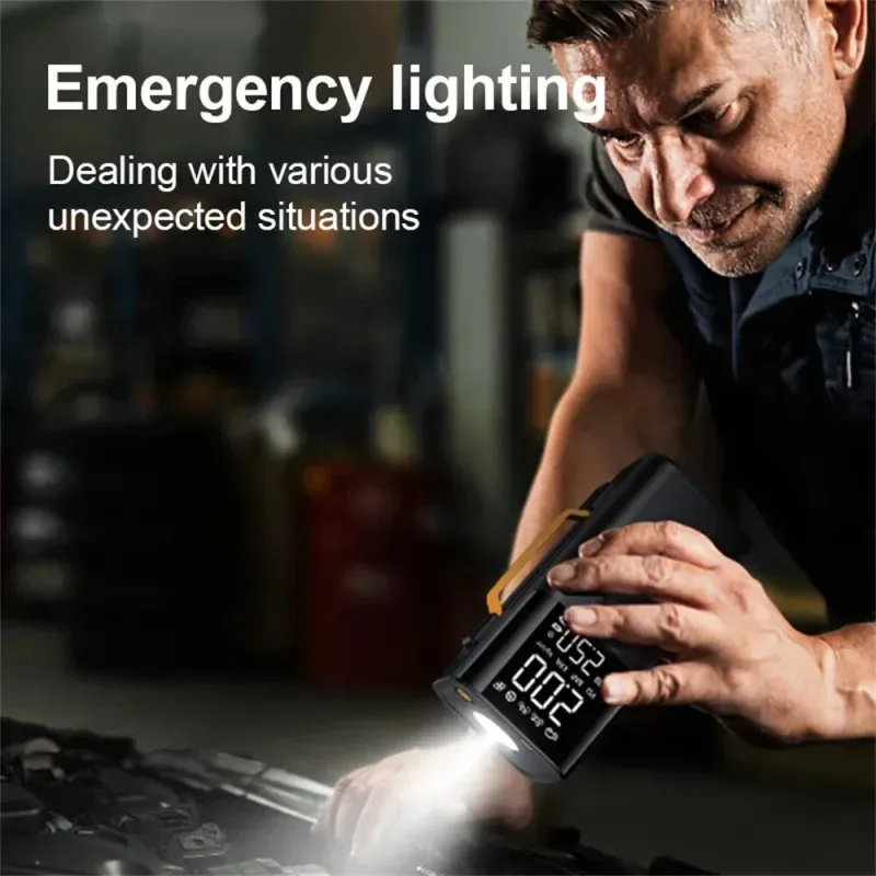 QS213 12V 6000mAh / 10000mAh Portable Multifunction Inflatable Blower Jump Starter All-in-One Dual-screen Digital Display Fast Charging Power Bank
