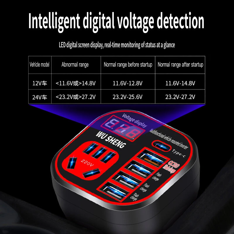 Universal Car Inverter 12V 24V To 220V Intelligent Voltage Detection Car Power Socket 200W Intelligent Charging Inverter Converter for Car Truck