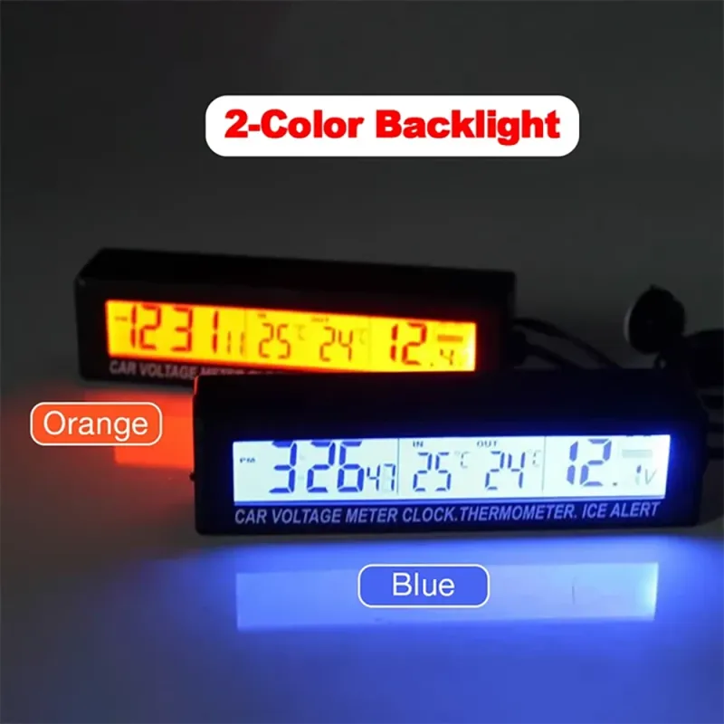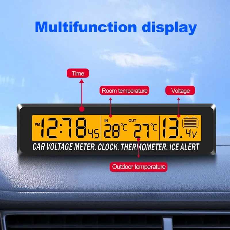 4 In 1 Clock Calendar Thermometer Car Multi-Function Color Screen Voltage With LCD Time Date Indoor And Outdoor Temperature Display