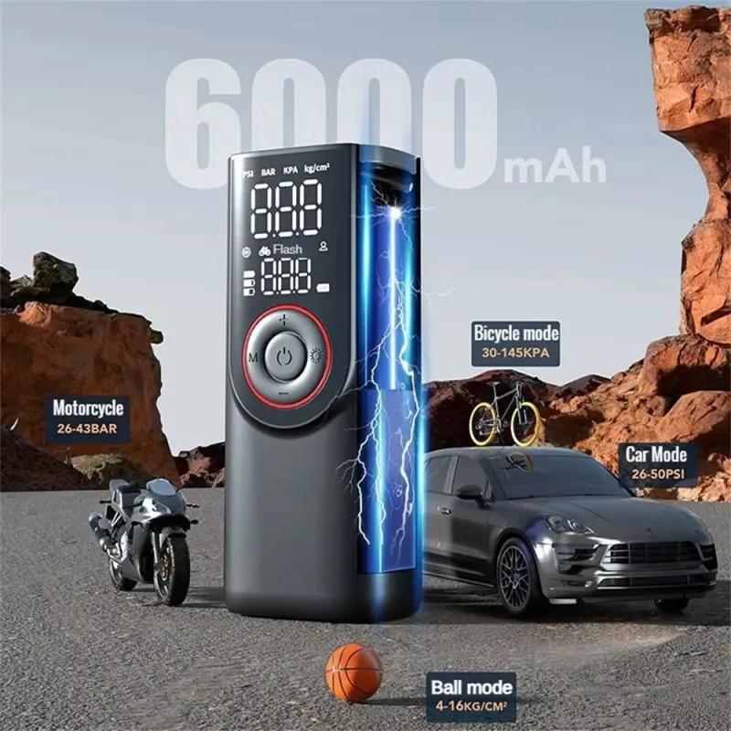 Wireless Tire Inflator Pump Portable Electric Air Compressor 6000mAh Rechargeable Digital Display 150PSI Fast Inflation for Car Motorcycle Bicycle Balls