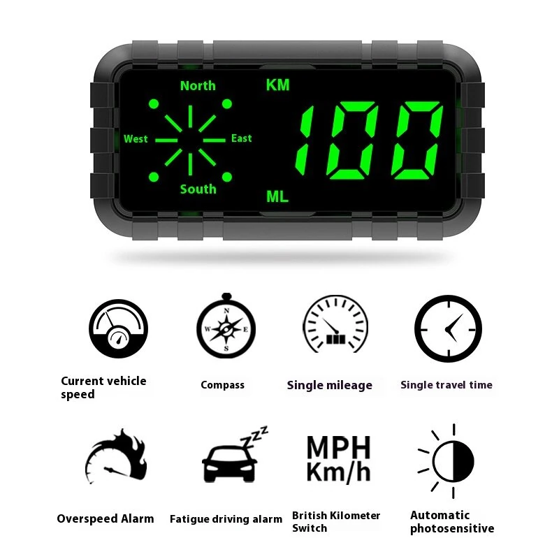 Car Head Up Display Speedometer Odometer Compass HUD GPS Digital Display Large Font Universal Suitable for All Cars Vehicles