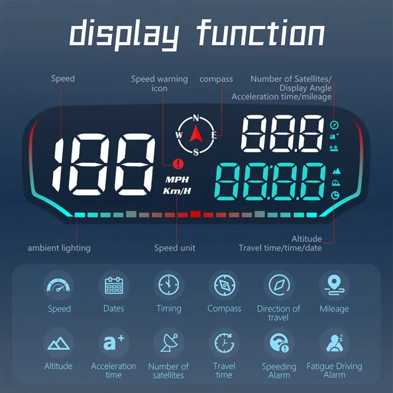G14 Car HUD Head-up Display Car Universal Beidou GPS Altitude Date Speedometer HD Display Screen Overspeed Alarm Fatigue Driving Alarm