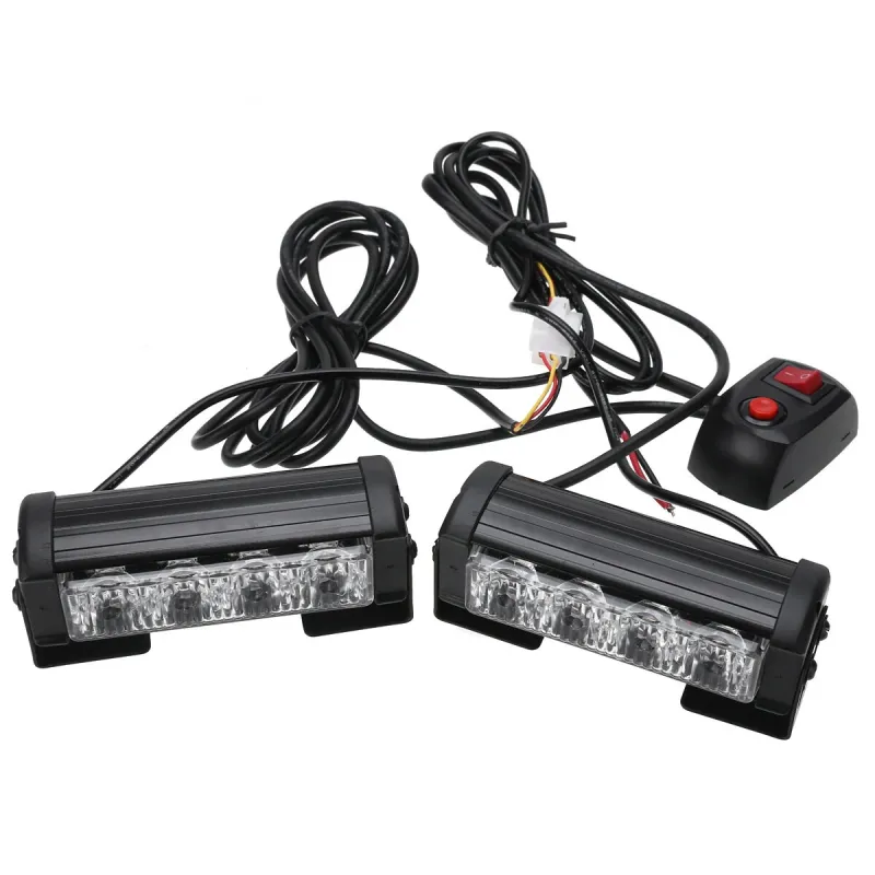 12V 4LED*2 Flashing Lights Car Front Grille Warning Lights Strobe Lights One To Two Long Bar Lights Warning Lamp