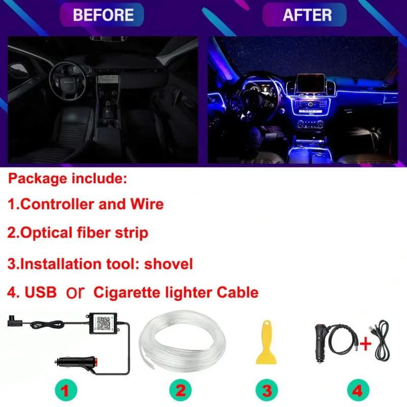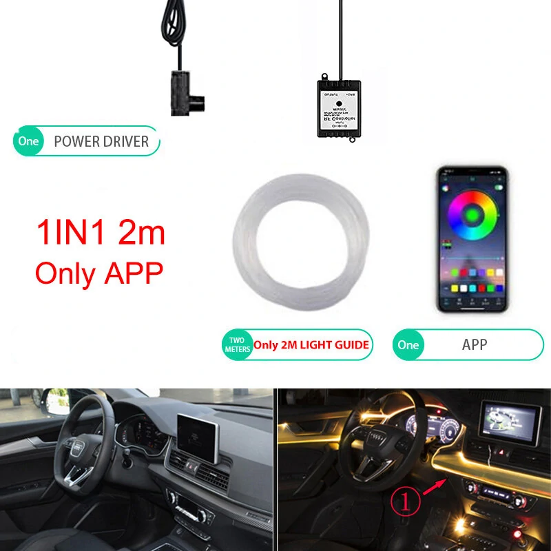 1IN1 2M RGB LED Atmosphere Car Interior Ambient Light Strips Light by App Control Neon LED Dash Board Decorative Lamp