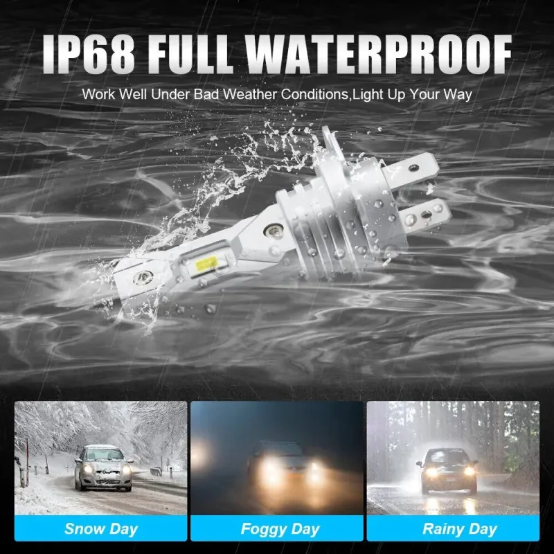 2 X Non-Fan H7 12V Car LED Headlight Bulb 6000K White Light LED Bulbs 1:1 Mini Headlight 18000LM CSP LED Chip IP67 Waterproof