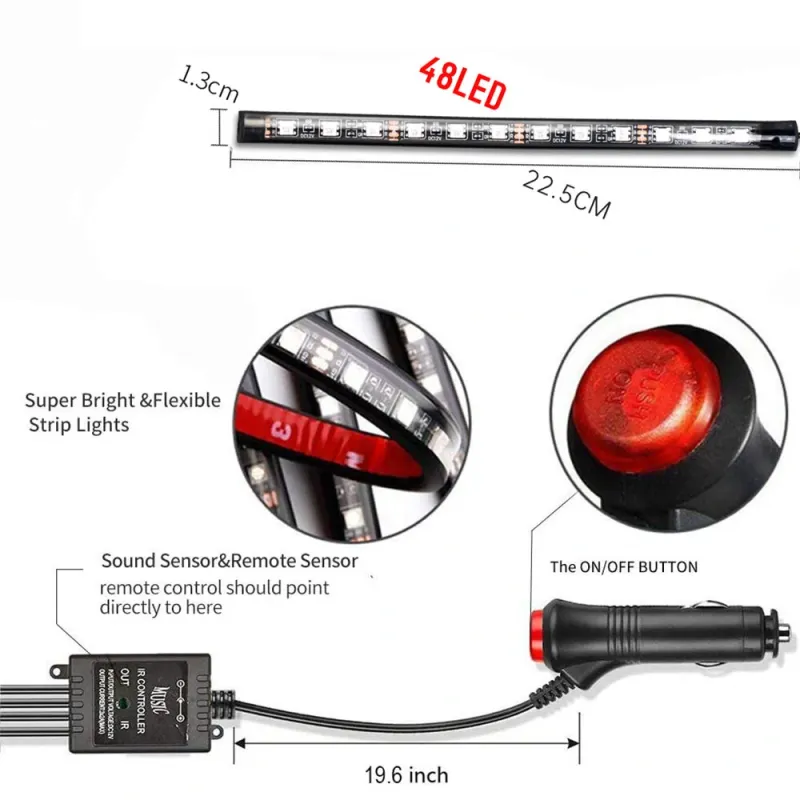 48 LED Car Interior Ambient Foot Strip Light Backlight Remote App Music Control Auto RGB Decorative Lamps