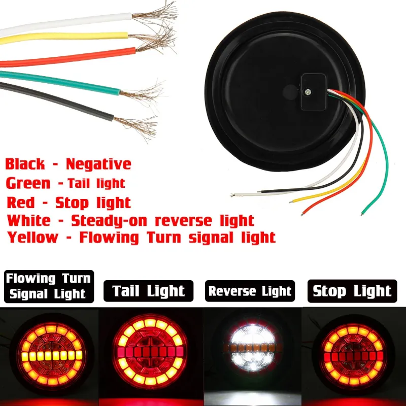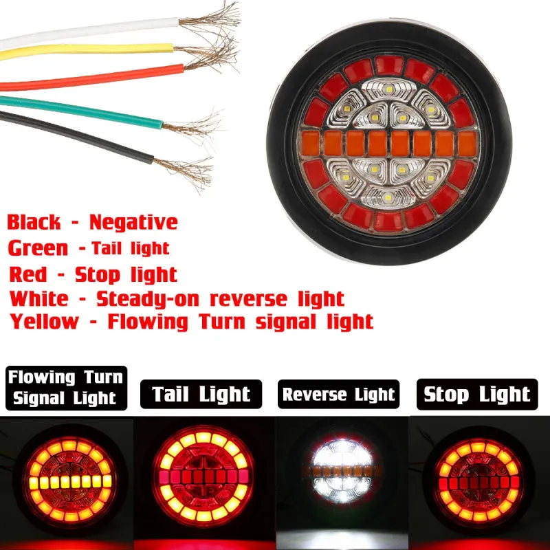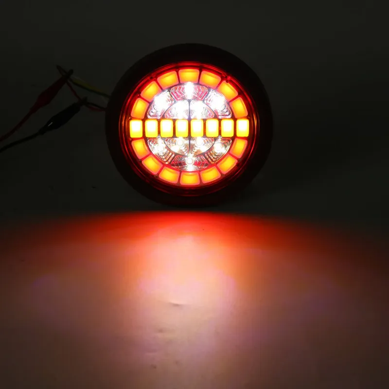 Rear Round Hamburger Led Tail Stop Lights Turn Signal Reverse Slim Lamp 12-24V