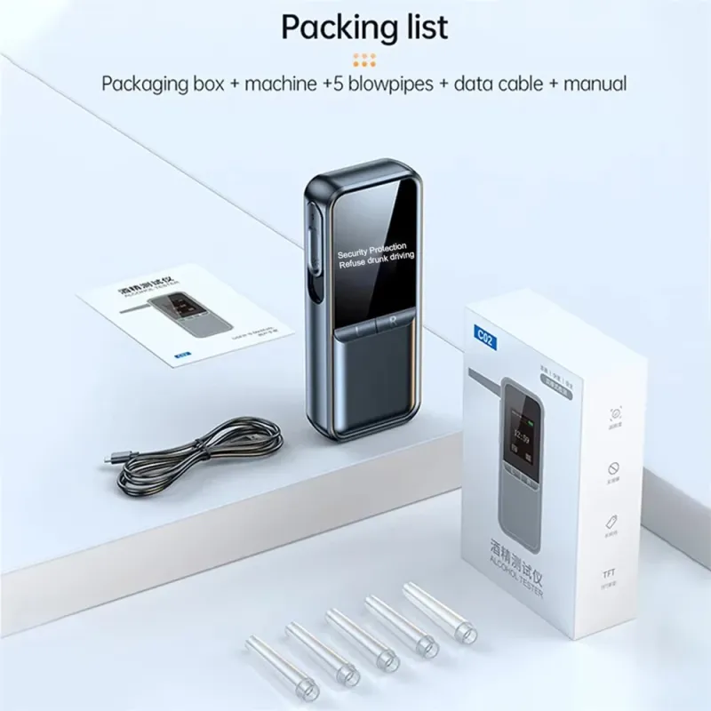 Precision Digital Breath Alcohol Tester Professional Breathalyzer With LCD Display USB Rechargeable Electronic Alcohol Tester