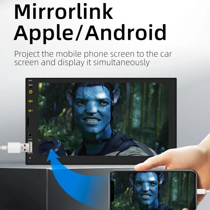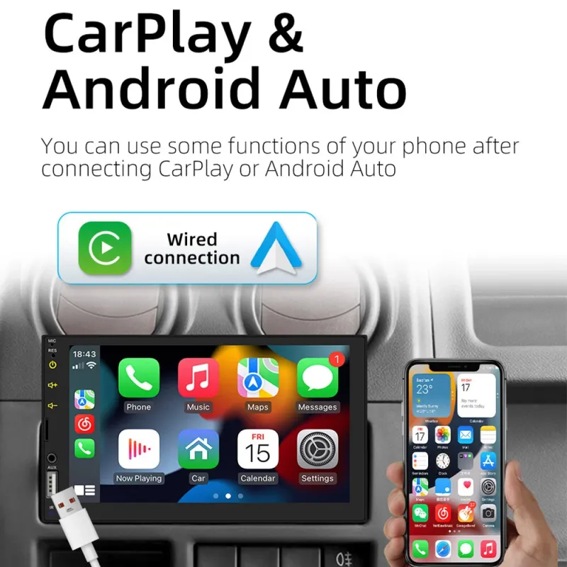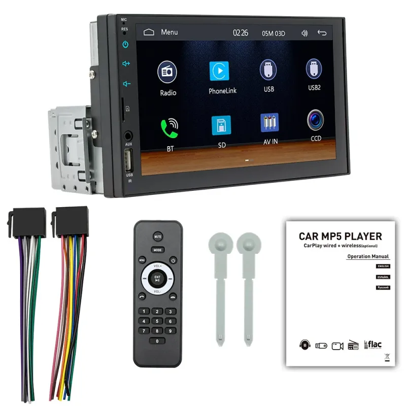 FX2 1Din Car MP5 Player 7 Inch IPS Screen Carplay Android Auto Bluetooth FM Radio Steering Wheel Control USB Support