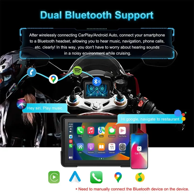 YUEHOO 5 inch Motorcycle MP5 Player IPS 2.5D Touch Screen IP67 Waterproof