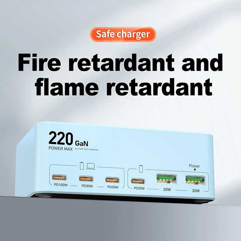 [GaN Tech]Bakeey WLX-818L 220W 6-Port USB PD Charger 2USB-A+4USB-C PD QC3.0 Fast Charging Desktop Charging Station EU Plug US Plug for iPhone 16 15 Pro 14 13 12 Pro Max for HUAWEI for SAMSUNG for Airpods for Apple Watch