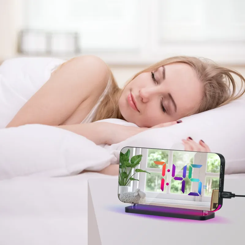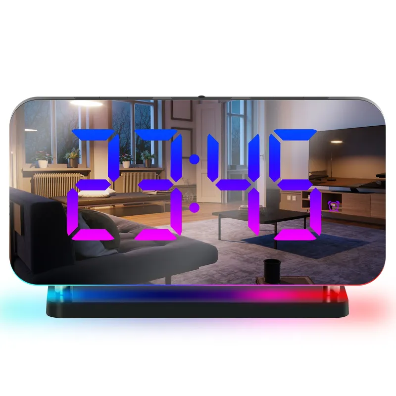 Large Screen Electronic LED Mirror Clock Colorful RGB Display Colorful Night Light Radio Projection Clock Led Electronic Clock Desktop Alarm Clock
