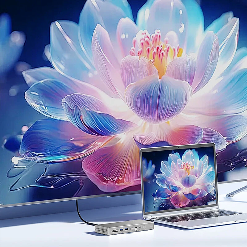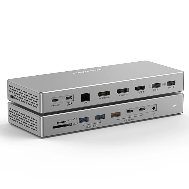 Blueendless HD1601 16-in-1 Type-C Docking Station with USB2.0 USB3.2 PD100W DP/HD Gigabit Port 3.5mm Audio SD&TF3.0 PC Multiports Splitter Adapter