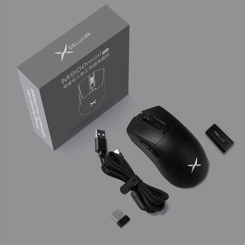 DELUX M900mini Pro Gaming Mouse PAW3395 Sensor FPS Wireless Dual Mode 1K Ergonomic 46g Ultra-Lightweight Mice for PC Laptop Computer