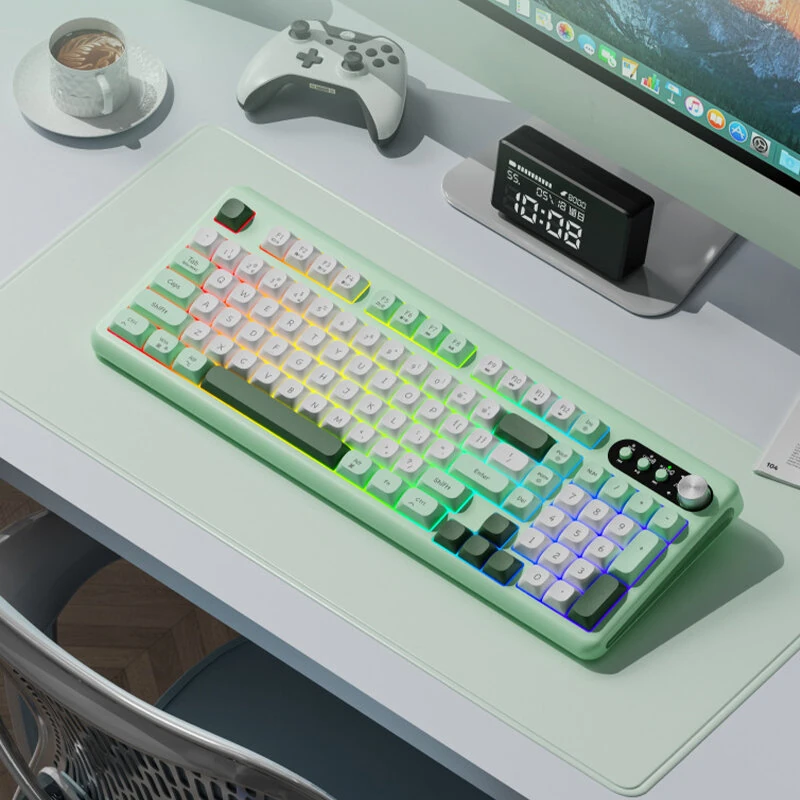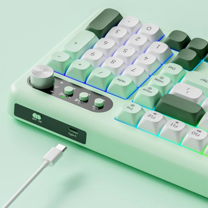EWEADN V101 98 Keys Tri-mode Wireless Keyboard with Knob RGB Light Mute Button 4000mAh Rechargeable 2.4G/bluetooth/Type-C Wired E-sports Gaming Keyboards