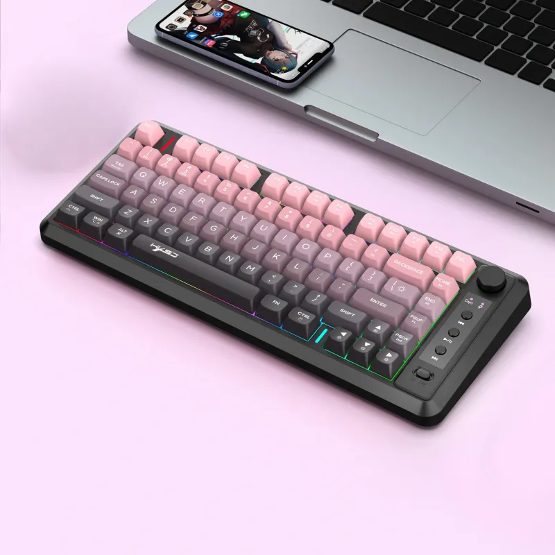 HXSJ L400 Three Mode Wireless Gaming Keyboard 81 Keys Ergonomic RGB Backlight Membrane 2000mAh Battery Gradient Keycaps Gamer Keyboards