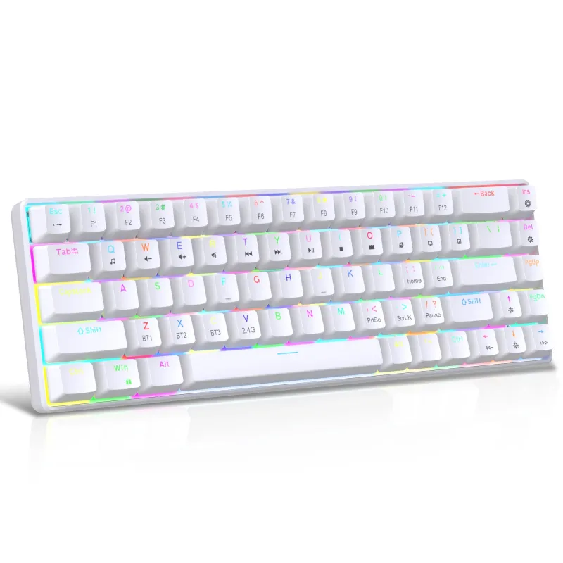 HXSJ V800 Tri-mode Wireless Mechanical Keyboard 68 Keys Hot-swappable RGB Backlight 2000mAh Rechargeable Type-C Gamer Keyboards